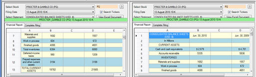 For this example we will bring up two Balance Sheets