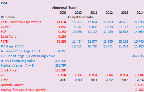 result, at the end of the Stage 1 IBM’s FCFE is assumed to grow