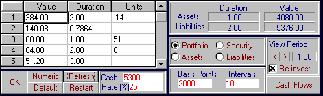 Now click on O.K. You can also specify the size of the initial shift in the yield curve (in basis points). In the following screen, a total shift of +/- 2000 basis points (20%) with 2 partitions either side of the current 25% is specified: