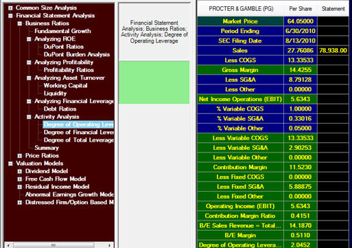 A firm’s operating leverage is defined as the percentage change in the firm’s operating earnings (EBIT less any non-operating income), that accompanies a percentage change in the contribution margin. That is, the operating income elasticity with respect to the contribution margin. This important number predicts for an analyst what the percentage change in operating earnings is given the percentage change in sales revenue. As a result, this number is important for predicting EBIT given the predicted growth in Sales Revenue. The consensus sales revenue forecast is readily available and the DOL provides an EBIT forecast given this consensus number.